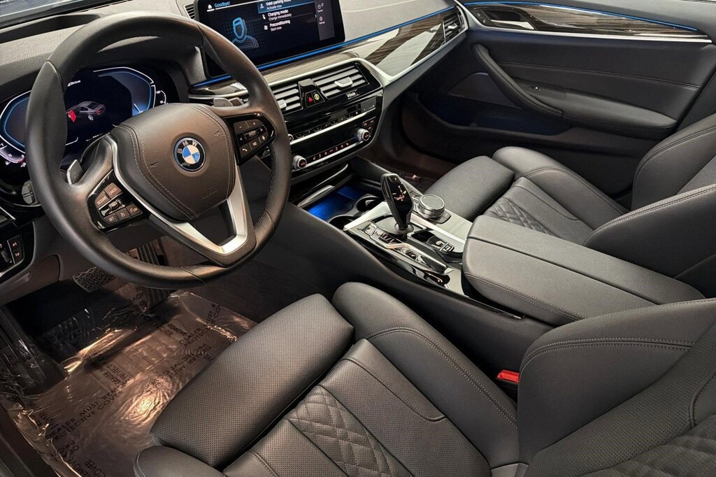 This 2023 BMW 5 Series 530e is a One Owner vehicle with a Clean Carfax, exterior, and interior. Key features include FINELINE RIDGE WOOD TRIM, BLACK PERFORATED SENSATEC UPHOLSTERY, WIRELESS CHARGING, HEATED FRONT SEATS, PREMIUM PACKAGE, Sun/Moonroof, Rear Parking Aid, Blind Spot Monitor, Cross-Traffic Alert, and much more!
