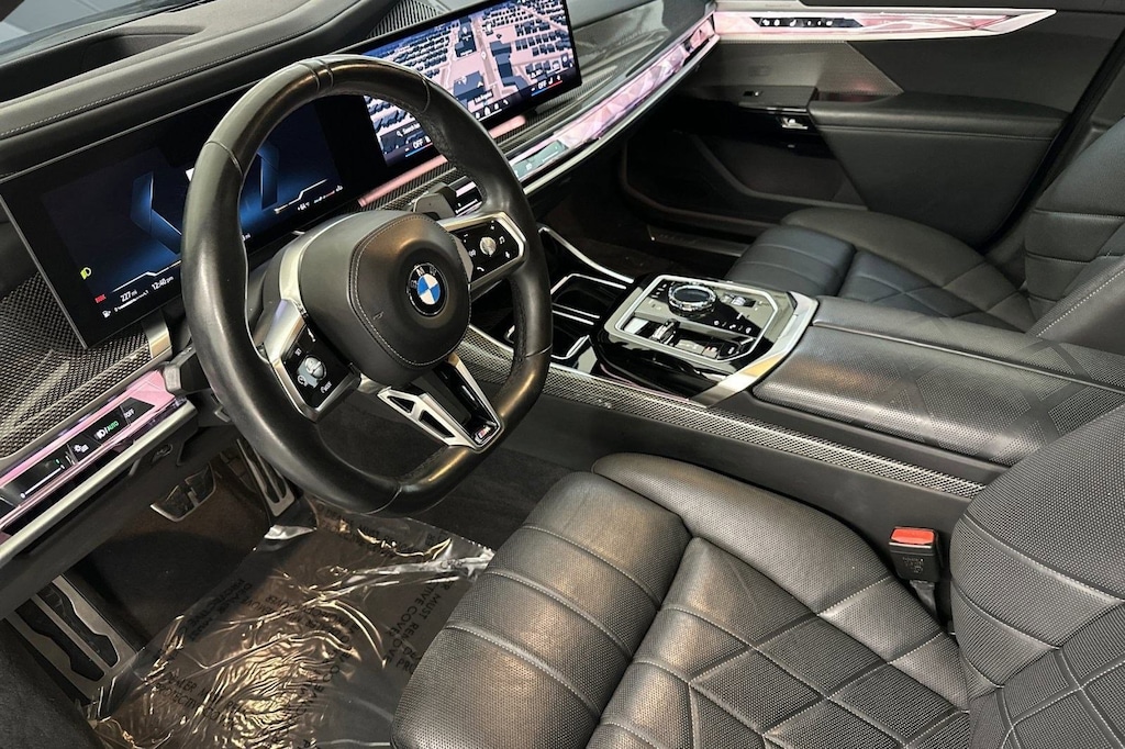 This 2023 BMW 7 Series 740i is a One Owner vehicle, exterior, and interior. Key features include PARKING ASSISTANCE PACKAGE, FRONT VENTILATED SEATS, FRONT MASSAGING SEATS, CARBON FIBER TRIM W/SILVER THREAD & PIANO BLACK, BLACK EXTENDED MERINO LEATHER UPHOLSTERY, M SPORT PROFESSIONAL PACKAG, DRIVING ASSISTANCE PROFESSIONAL PACKAGE, Remote Engine Start, Automatic Parking, Blind Spot Monitor, Cross-Traffic Alert, and much more!