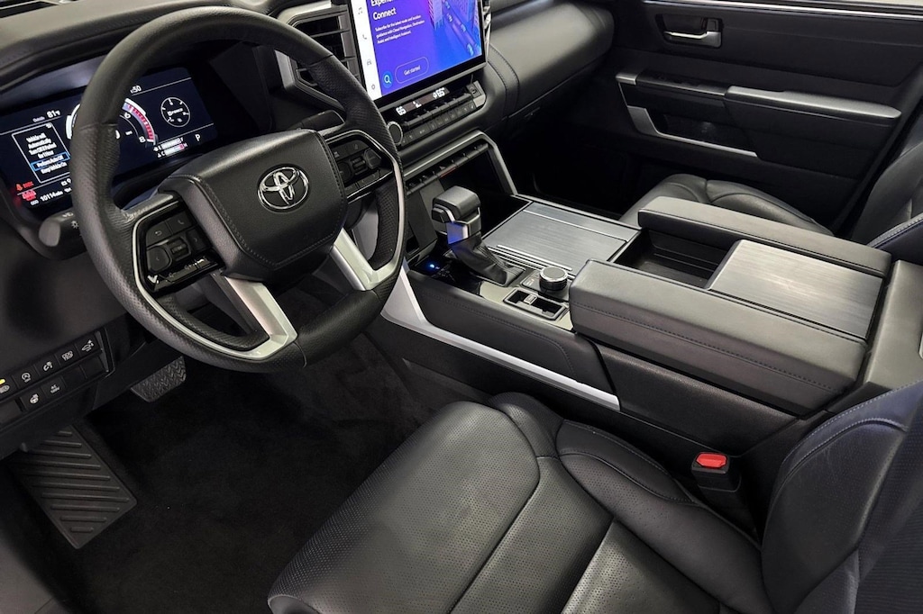 This 2025 Toyota Tundra 4WD Platinum is a One Owner vehicle with a Clean Carfax, exterior, and interior. Key features include Four Wheel Drive, Tow Hitch, Panoramic Roof, Heated Mirrors, Headlights-Auto-Leveling, Bluetooth Connection, Heated and Cooled Front Seat(s), Woodgrain Interior Trim, Leather Seats, Navigation System, Rear Parking Aid, Blind Spot Monitor, Cross-Traffic Alert, Aerial View Display System, and much more!